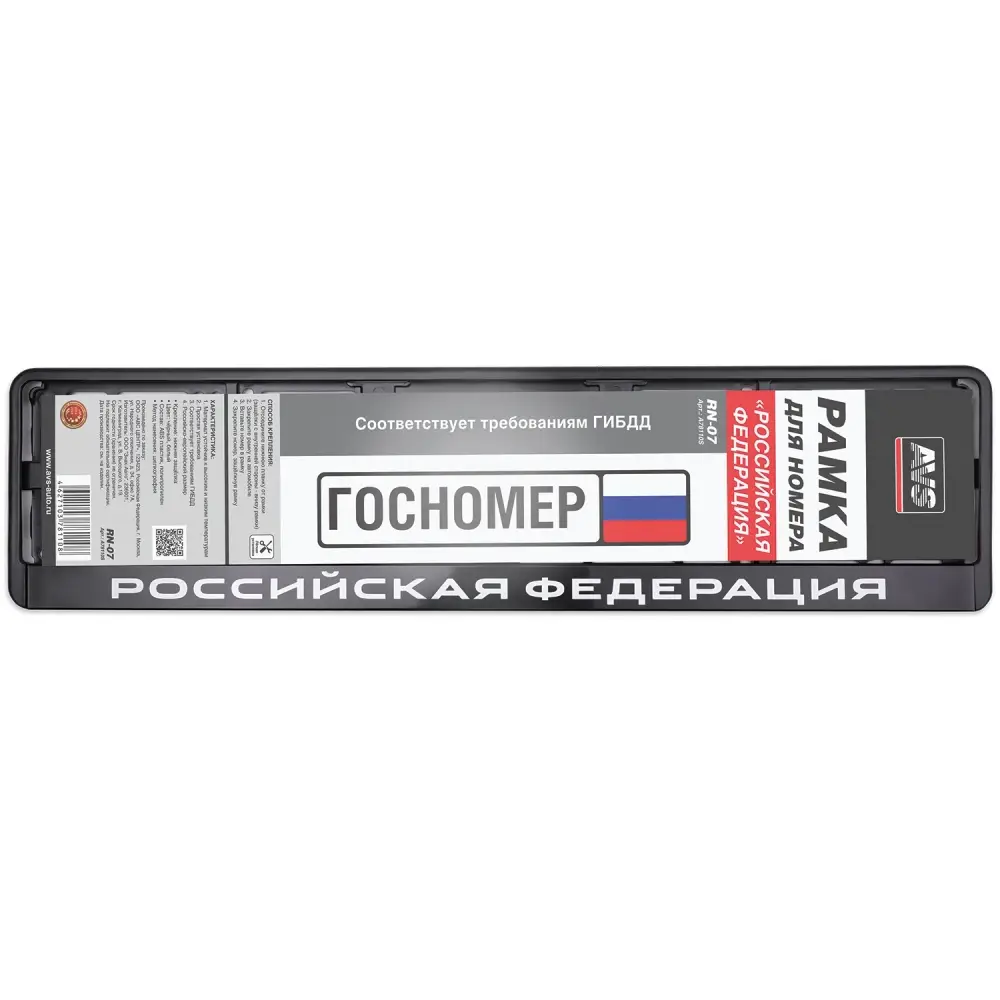 Рамка под номерной знак нижняя защёлка, шелкография "Российская Федерация" (чёрная, белая) AVS RN-07