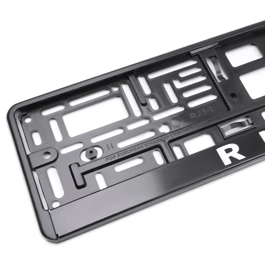 Рамка под номер, изготовлена из прочного эластичного пластика, предназначена для удобной установки номерных знаков на автомобиль. Конструкция открытия рамки - "нижняя защелка". Данная конструкция обладает надежным креплением номерного знака по всему контуру.