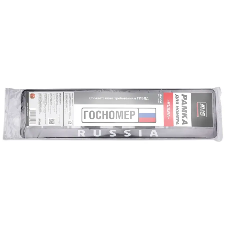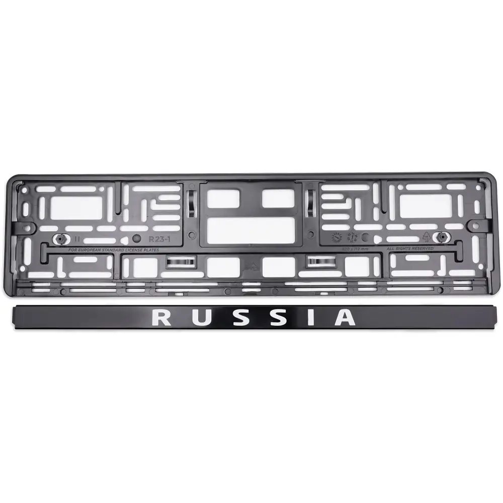 Рамка под номерной знак нижняя защёлка, шелкография "Russia" (чёрная, белая) AVS RN-06