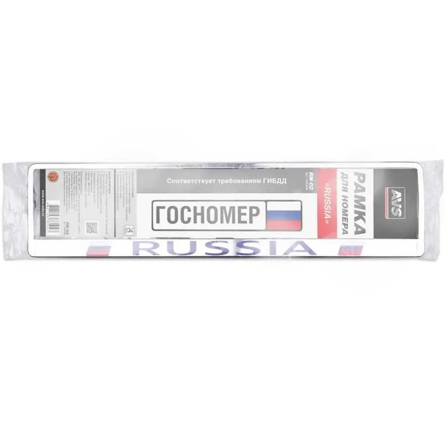 Рамка под номерной знак "Russia" (хром) AVS RN-02