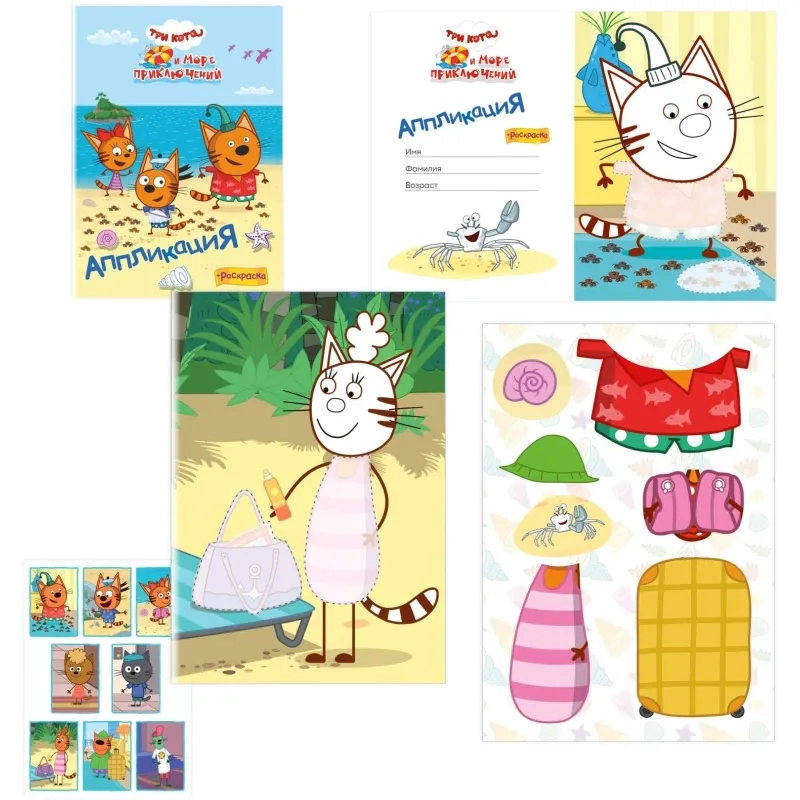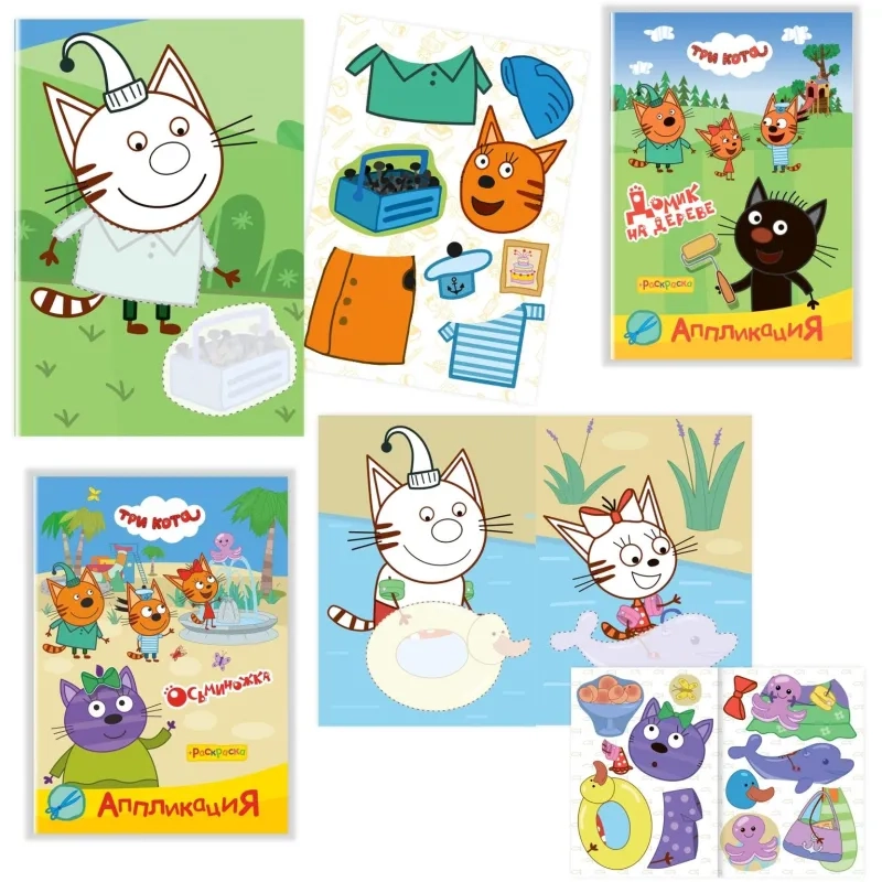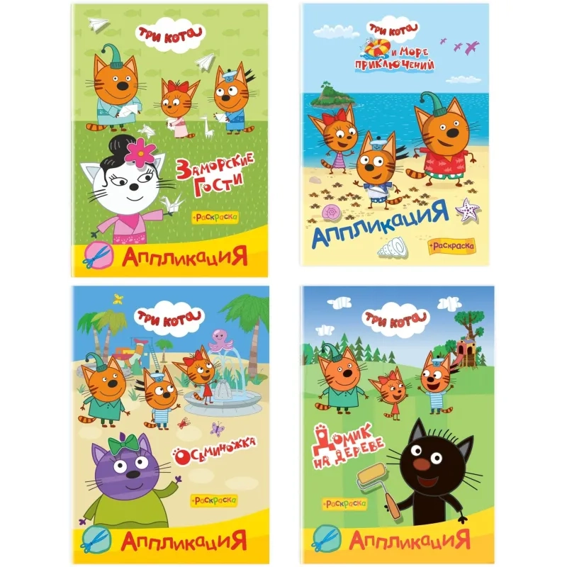 Раскраска + аппликаций Три кота серии Приклей-ка,набор 4шт, 9785912889707