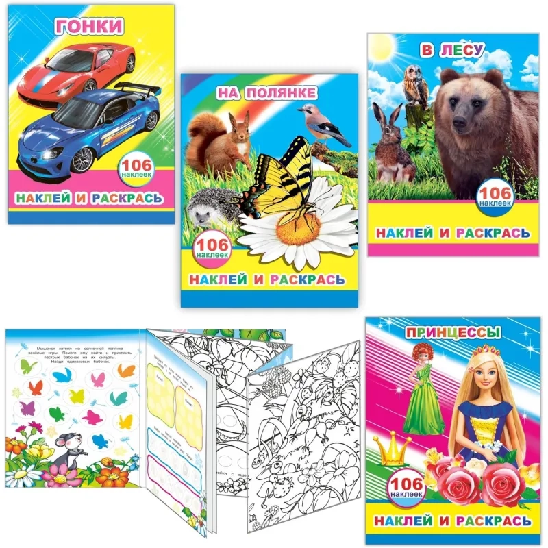 Раскраска серии Наклей и раскрась,набор 4шт, 9785912889691