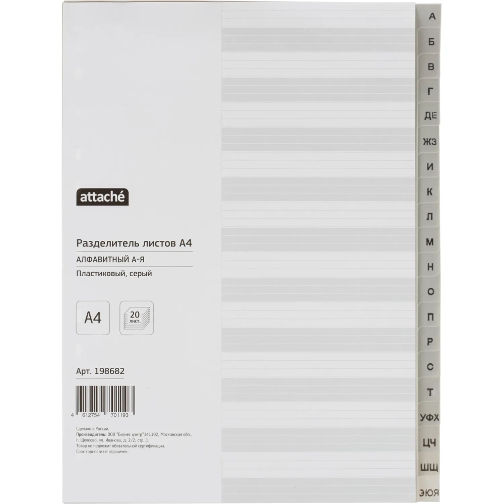 Разделитель листов из сер.пласт. алфавит А-Я Attache, А4, 20 разделов