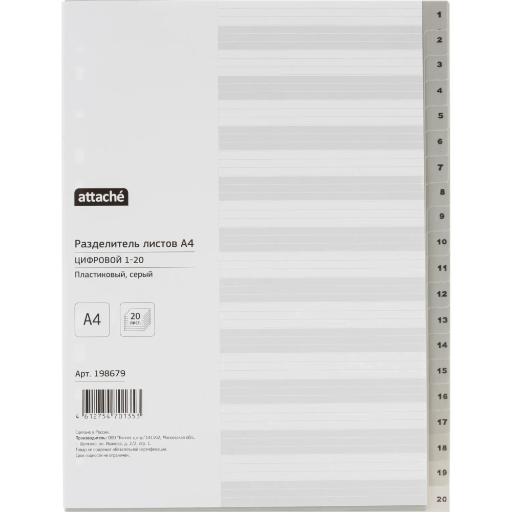 Разделитель листов из сер.пласт. с индексами Attache, А4, цифровой 1-20