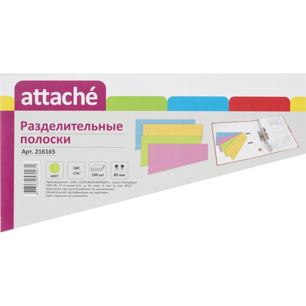 Разделитель листов Разделительные полоски Attache, зеленые, 100 шт./уп.