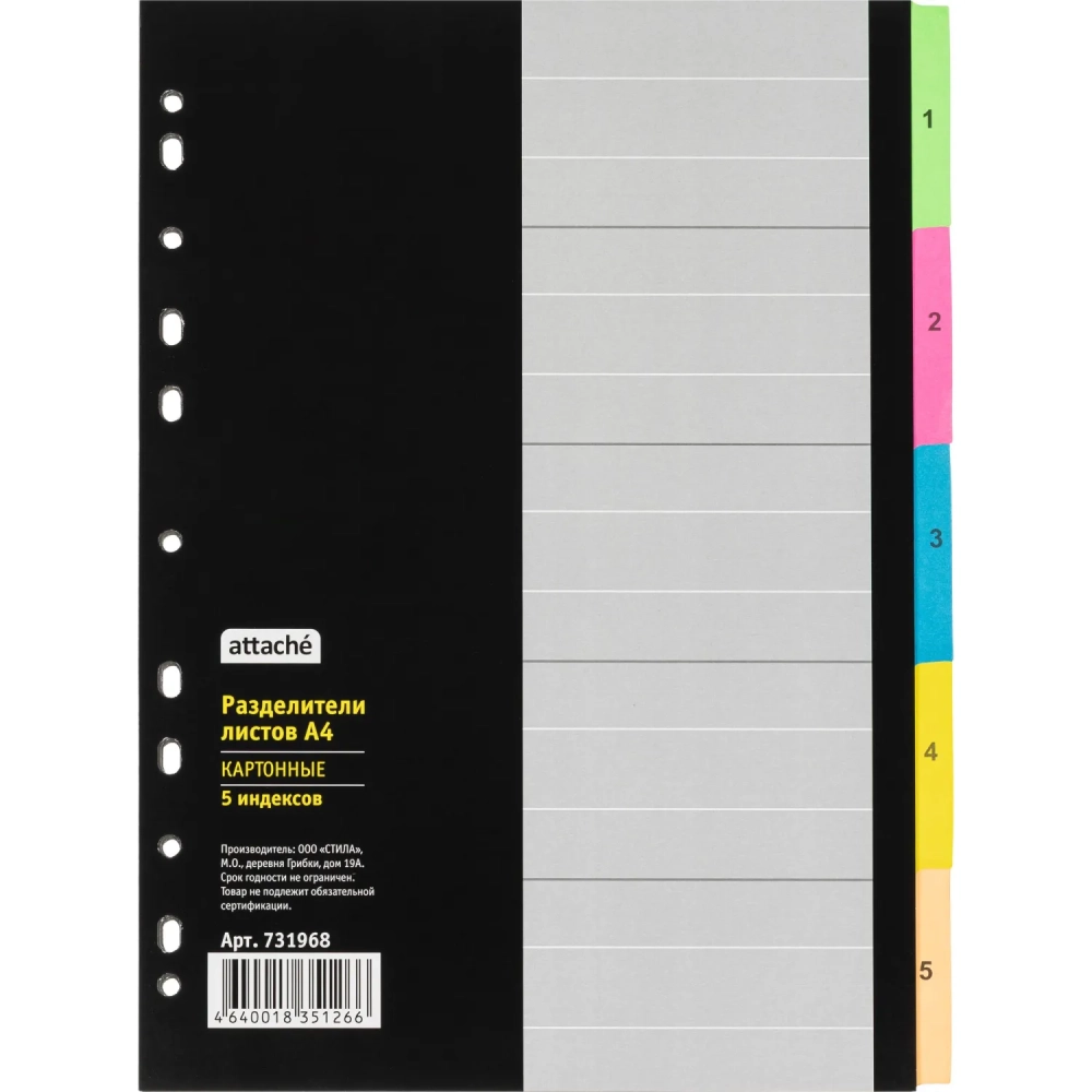 Разделитель листов с индексами Attache , А4,цифровой 1-5 , картон