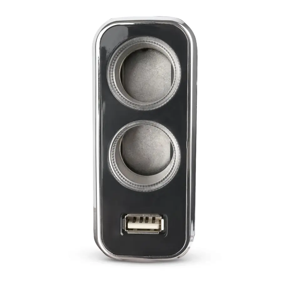 Разветвитель позволяет подключать до 3-х устройств одновременно в разъем прикуривателя через 2 разъема прикуривателя и USB порт. Крепкое надежное устройство в корпусе из огнестойкого пластика. Защита от короткого замыкания и перепадов напряжения. Возможность установки в любой части автомобиля, благодаря проводу длиной 1 метр. Работа в сетях с номинальным напряжением 12В и 24В. Универсален для любых автомобилей.
