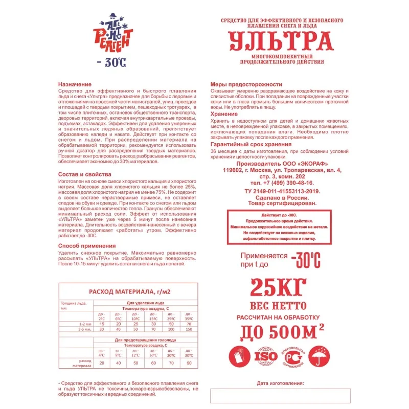 Реагент противогололёдный Mr. Defroster Ультра мешок 25 кг до -30С