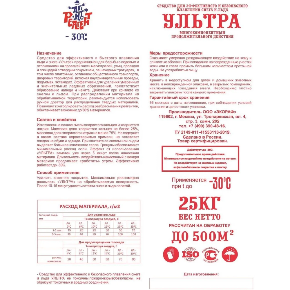 Реагент противогололёдный Mr. Defroster Ультра мешок 25кг._СПб
