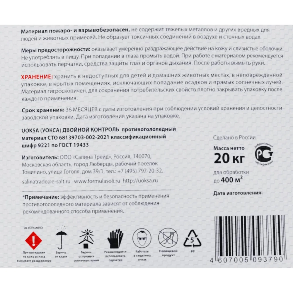 Реагент противогололёдный UOKSA ДвойнойКонтроль с мрам/крош 20кг до-25С_СПБ