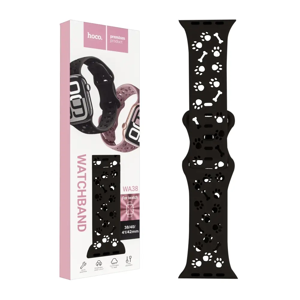 Ремешок для Apl watch 38/40/41mm WA38 Time series solid color silicone strap black HOCO