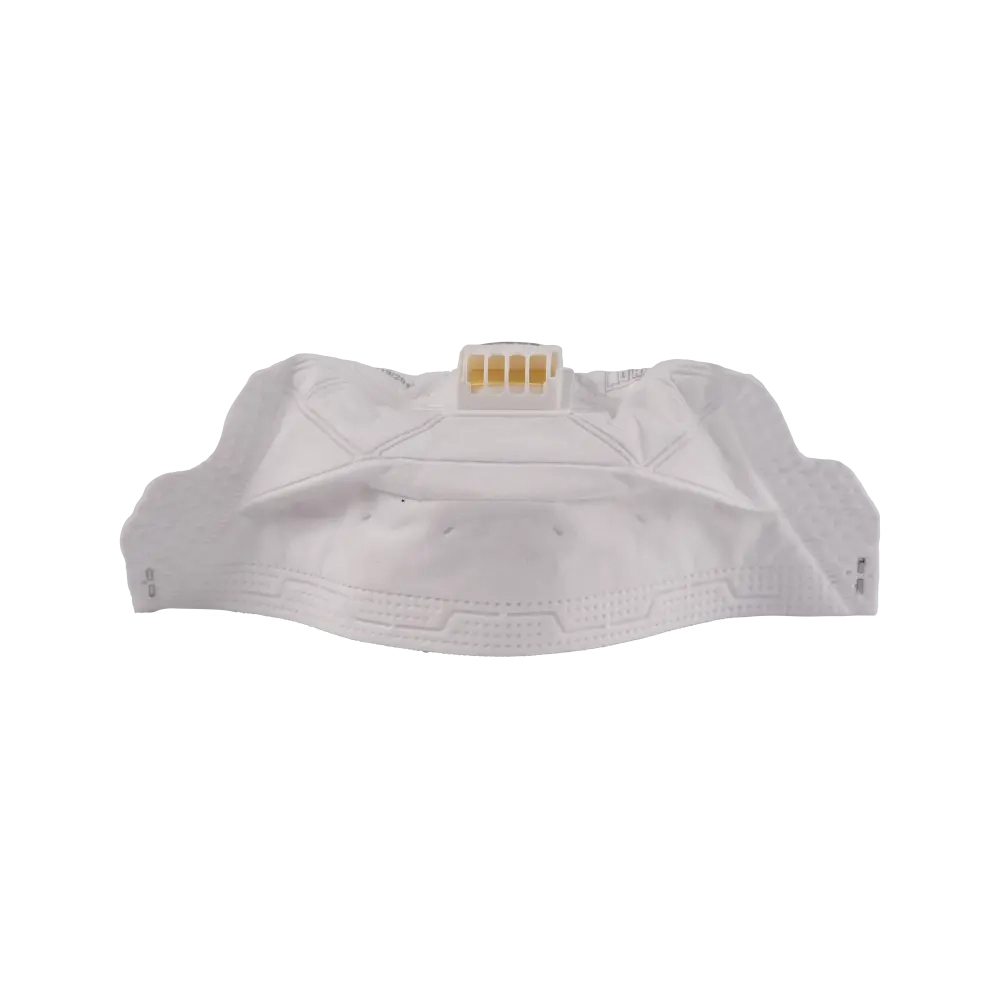 У респиратора 3М™ VFlex™ 9162V увеличенная поверхность высокоэффективного фильтра, которую обеспечивают V-образные углубления на поверхности полумаски. Надежный носовой зажим из алюминия и фильтрующая подушечка под ним делают дыхание в таком респираторе легким, а рабочий диалог незатрудненным.