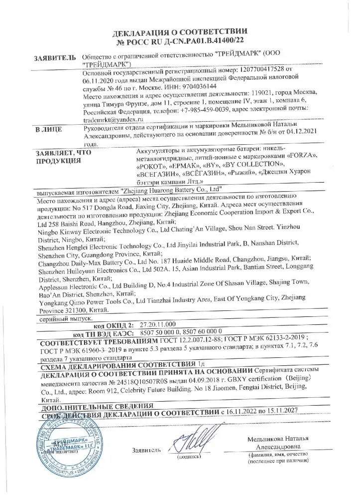 *ч мощностью 20 Вт, серия Универсал совместима со всеми моделями инструмента РОКОТ, входящими в систему ONE, в которую входят: шлифовальная машина, полировальная машина, бесщеточная дрель-шуруповерт, а также аккумуляторная электропила. Аккумулятор надежный, обеспечивает длительную и бесперебойную работу электроинструмента.