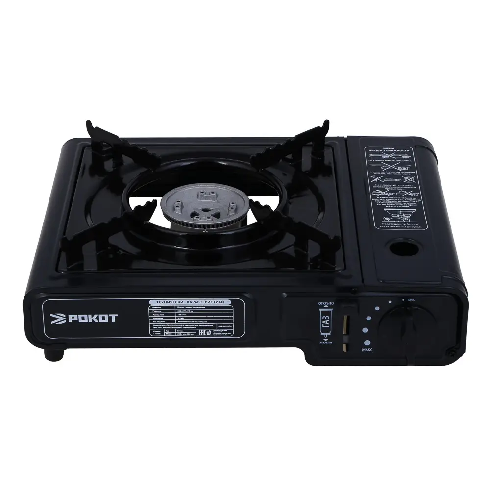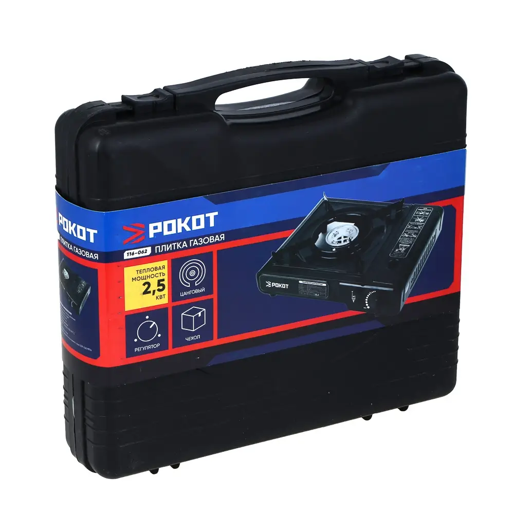 Газовая плитка РОКОТ — портативный и удобный вариант для использования на открытом воздухе. Она оснащена цанговым захватом для подключения к газовому баллону и поставляется в удобном кейсе для хранения и транспортировки. Размеры плитки составляют 32,2 х 27,1 х 7,5 см, а материалы изготовления — металл и пластик. Это надёжное и функциональное решение для приготовления пищи в походных условиях.