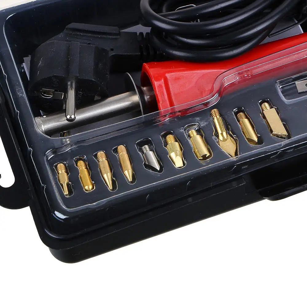 Занимаетесь выжиганием по дереву? Выжигатель РОКОТ 30 Вт – это прибор, который поможет создавать самые разные художественные орнаменты, рисунки и даже надписи. Комплект из 23 предметов включает насадки для выжигания и жала разной формы и диаметра для реализации любых творческих идей. Имеет удобную форму и комфортно ложится в руку. Быстро нагревается, а рабочая температура жала 400-420°C оптимальна для выжигания в том числе тонких линий. Предусмотрен пенал-органайзер для хранения.