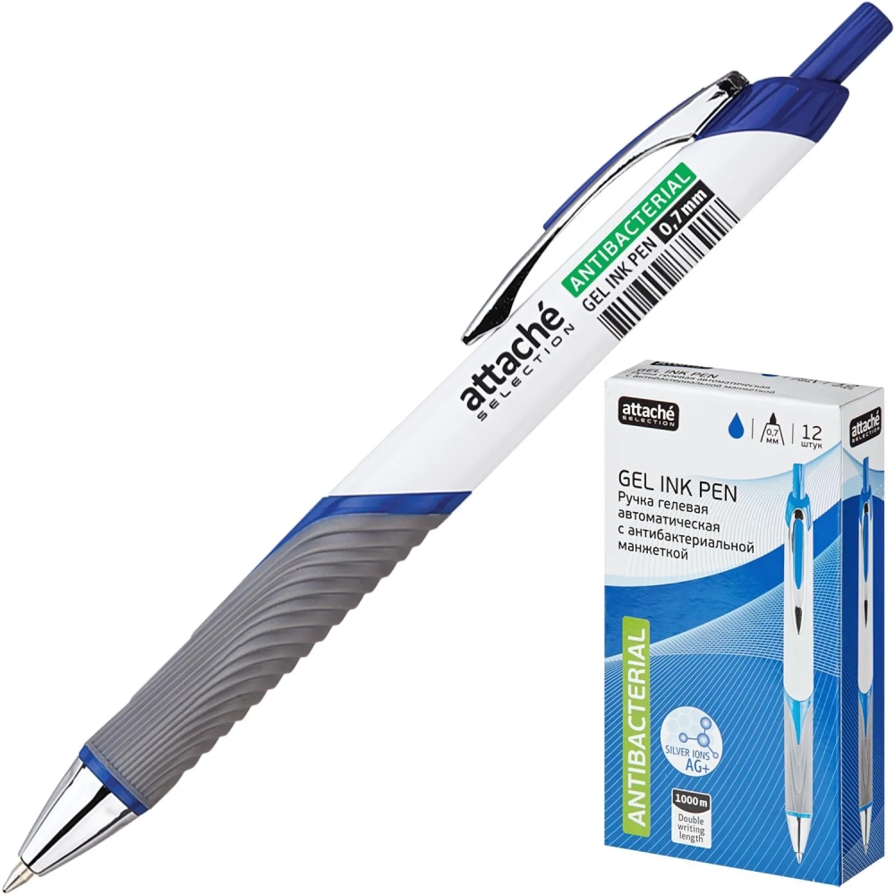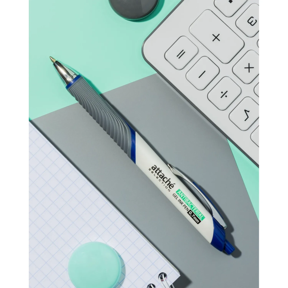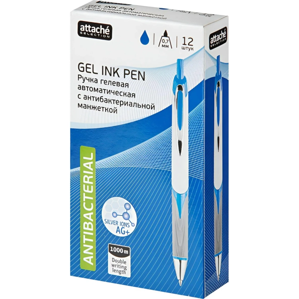 Ручка гелевая автомат. Attache Selection антибактер 0,7мм,синий,манж