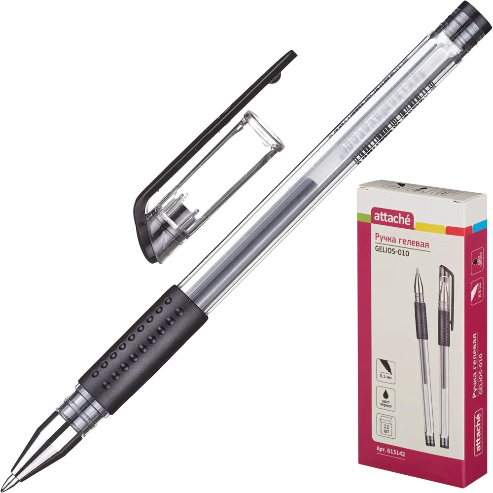 Ручка гелевая неавтомат. Attache Gelios-010 черный стерж, 0,5мм,манж