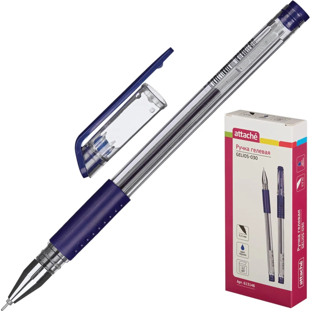 Ручка гелевая неавтомат. Attache Gelios-030 синий, игольч,0,5мм,манж