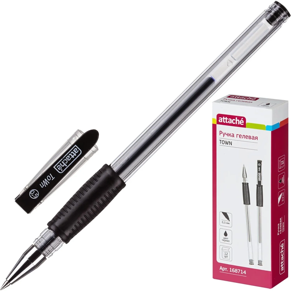 Ручка гелевая неавтомат. Attache Town 0,5мм с резин.манжеткой черный