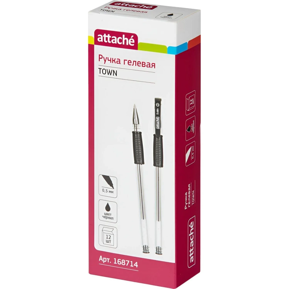 Ручка гелевая неавтомат. Attache Town 0,5мм с резин.манжеткой черный