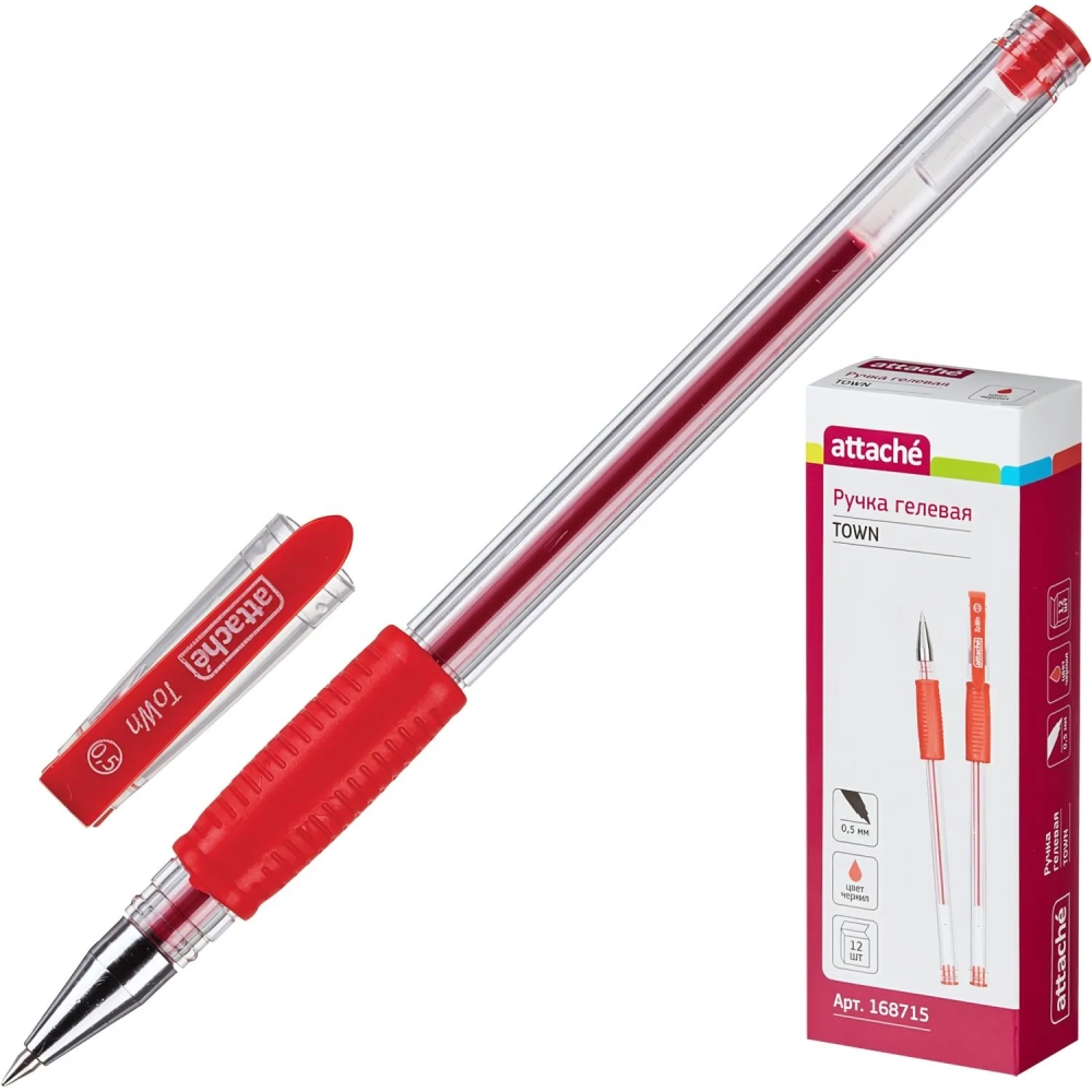 Ручка гелевая неавтомат. Attache Town 0,5мм с резин.манжеткой красный