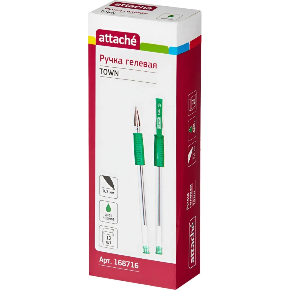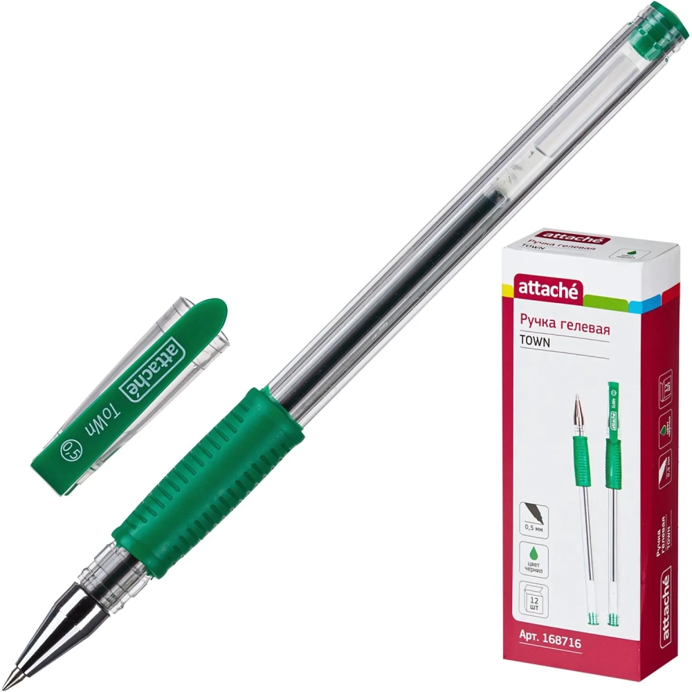 Ручка гелевая неавтомат. Attache Town 0,5мм с резин.манжеткой зеленый