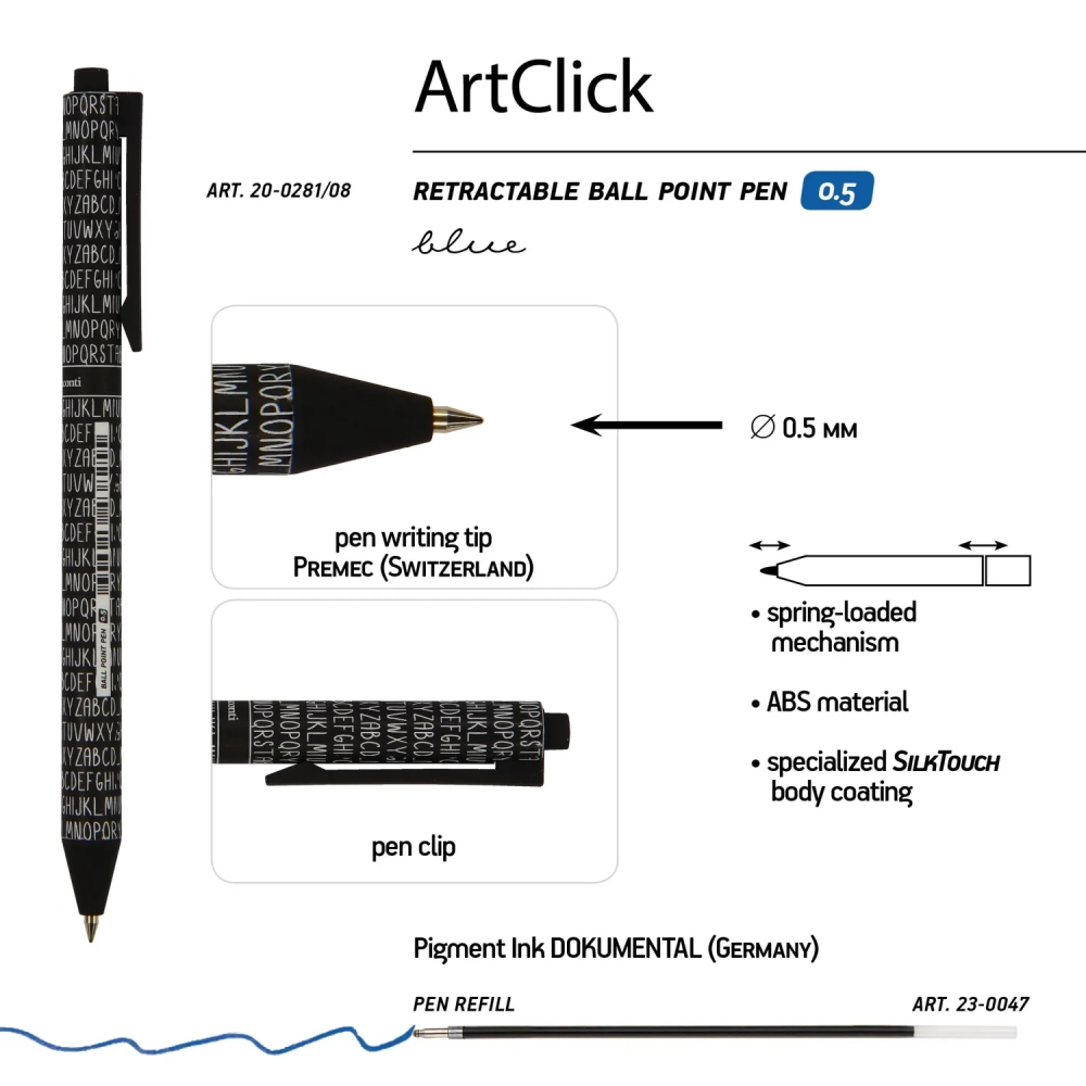 Ручка шариковая автомат. ArtClick.Буквы 0,5мм синяя 20-0281/08
