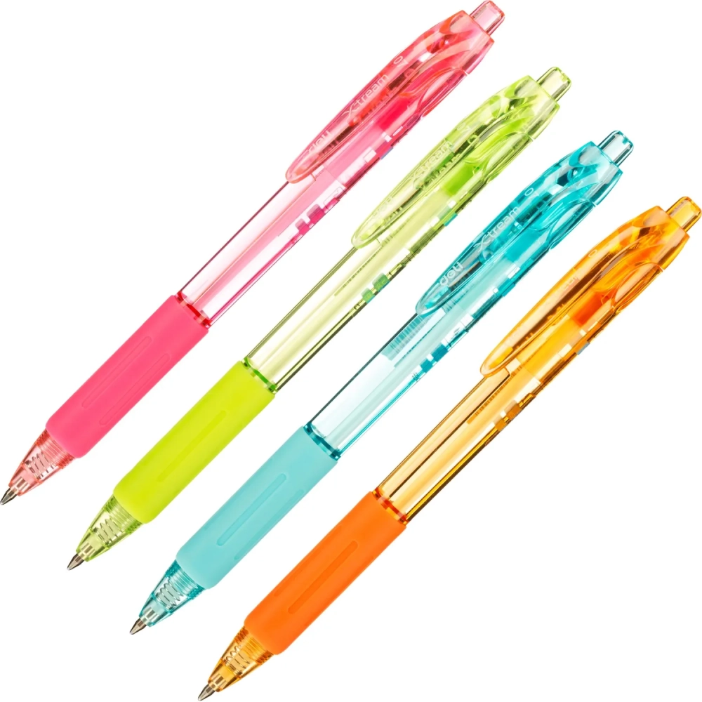 Ручка шариковая автомат. Deli EQ057-BL,син,пулев.нак,0,7мм,рез.грип,4цв.асс