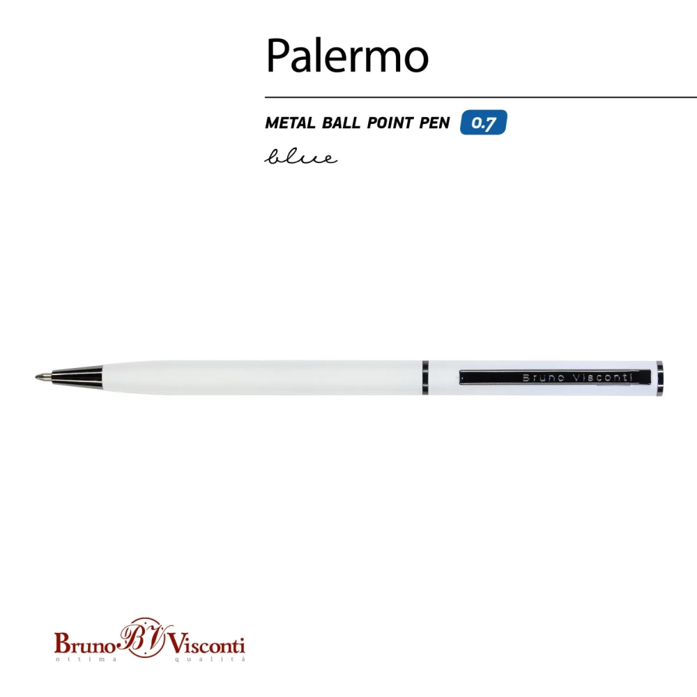 Ручка шариковая автомат. PALERMO бел.мет.корп, 0,7мм синяя 20-0250/14
