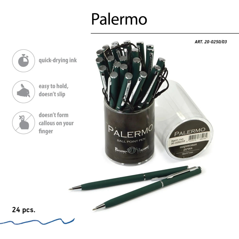 Ручка шариковая автомат. PALERMO зел.мет.корп,0,7мм синяя 20-0250/03