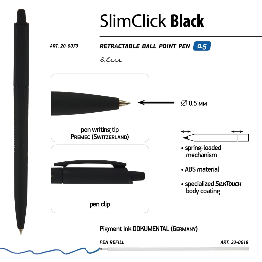 Ручка шариковая автомат. SlimClick.BLACK 0,5мм синяя 20-0073