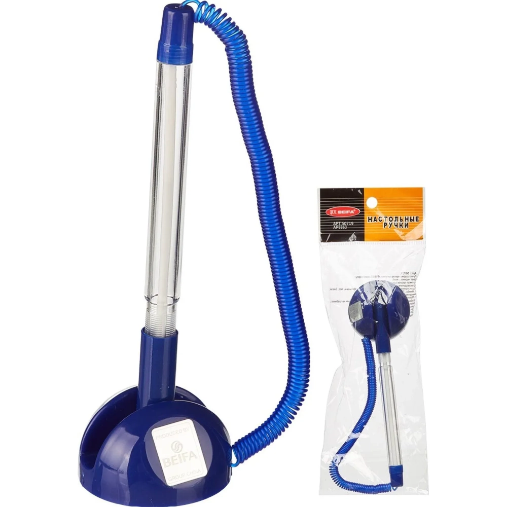 Ручка шариковая на подставке на липучке 8863 синяя