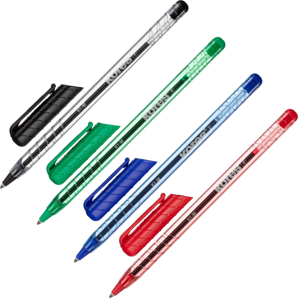 Ручка шариковая неавтомат. KORES К1 0,7ммтреуг.корп4шт/бл сн/чр/кр/зл