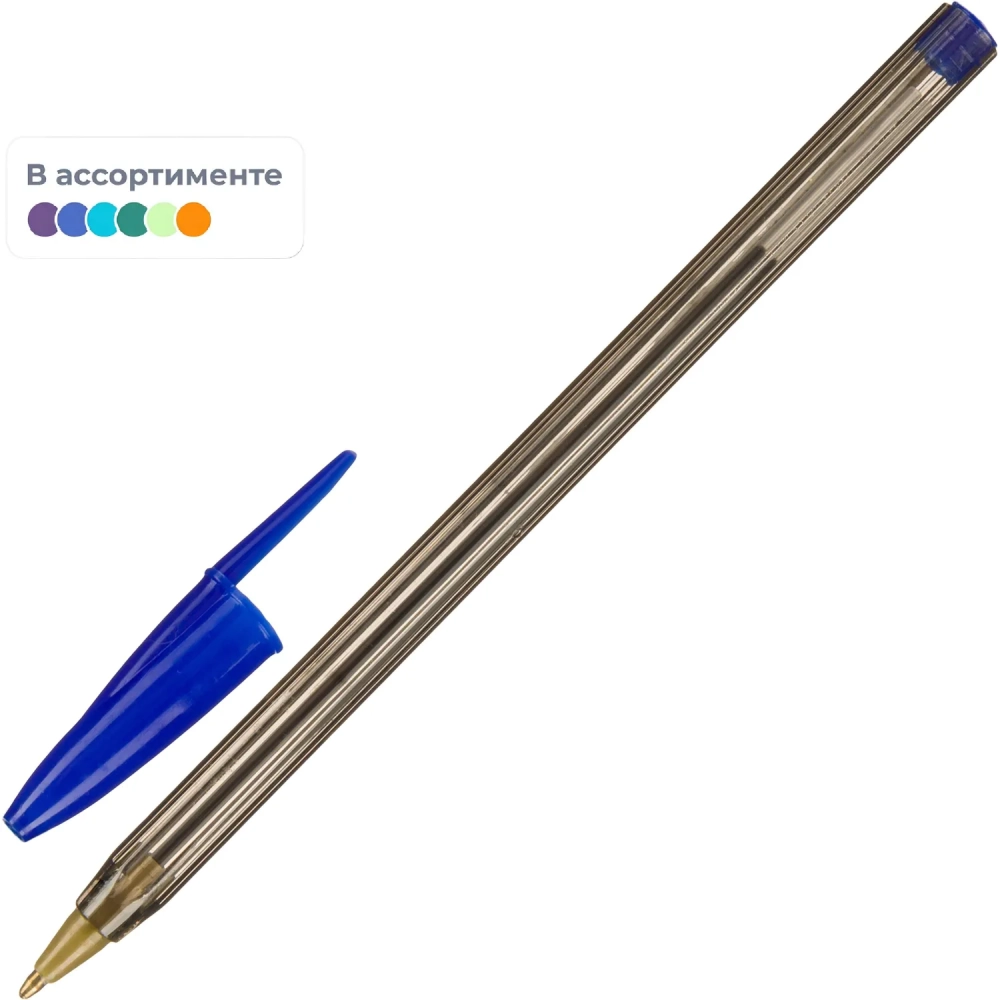 Ручка шариковая неавтомат. линия 0,5 мм, синяя, в асс