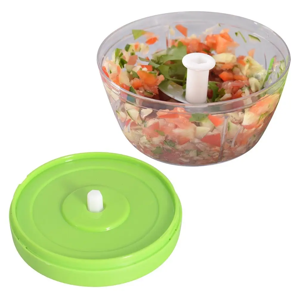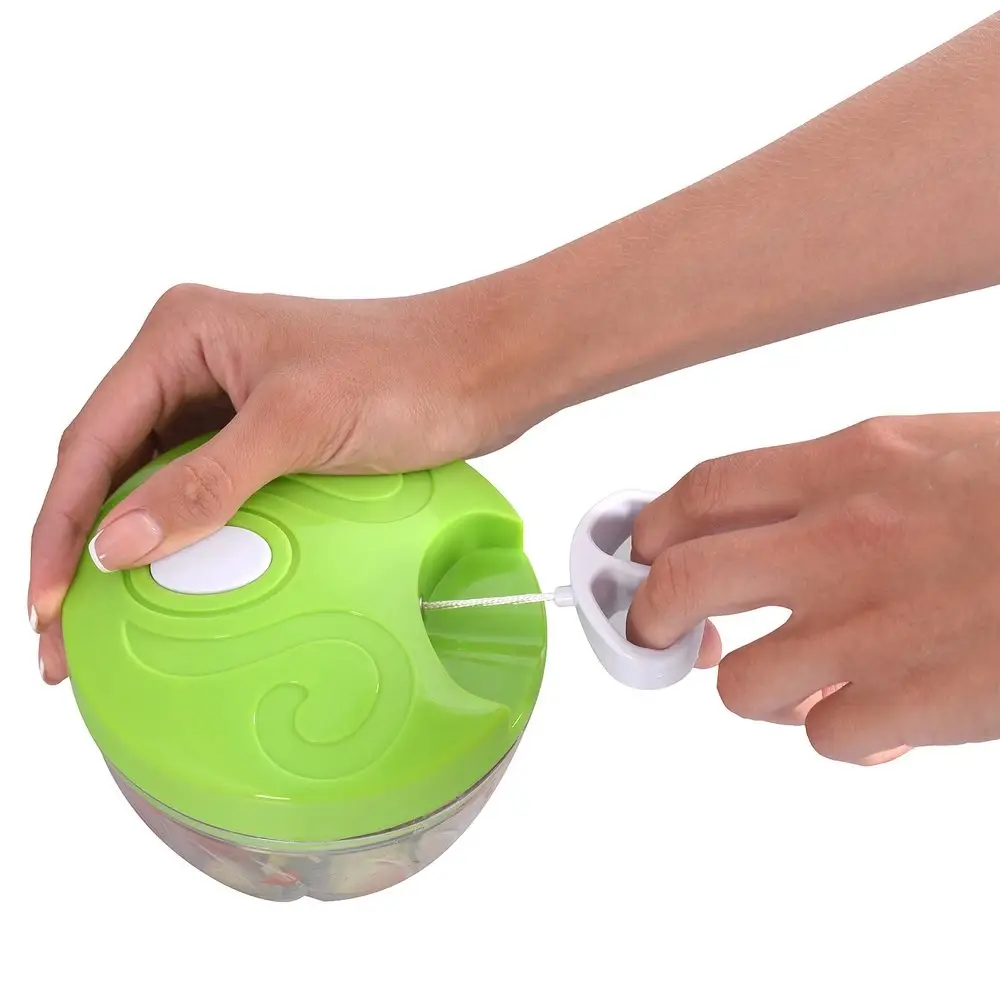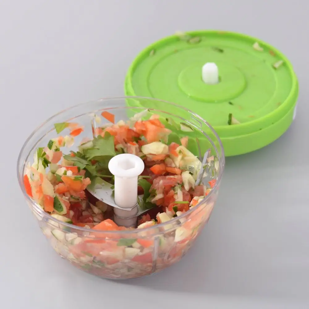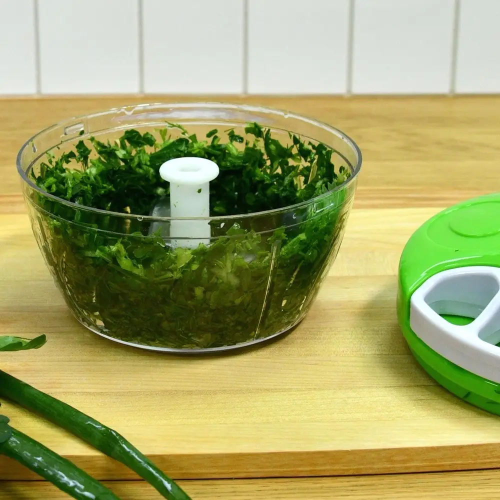 Ручной измельчитель предназначен для измельчения овощей, фруктов, бескостного мяса, орехов, шоколада. Компактный и простой в использовании механизм позволяет всего несколькими движениями смешать, измельчить или нарезать продукты. Поместите режущие лезвия в центр чаши, положите необходимые продукты, накройте крышкой и потяните за ручку на крышке, тем самым заставив лезвия вращаться. Для достижения лучшего результата, ваши движения должны быть четкими и резкими. Мягкие продукты не требуют усилия для измельчения.