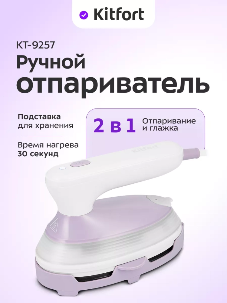 Ручной отпариватель «2 в 1» Kitfort КТ-9257 предназначен для разглаживания изделий из текстиля с помощью потока горячего пара или при помощи нагреваемой рабочей поверхности. Устройство обладает такими достоинствами, как мощный поток пара, минималистичный дизайн, удобство при использовании и хранении. Ручной отпариватель быстро приведет в порядок вещи и практически в любом месте без раскладывания гладильной доски. Одежда при этом может висеть на вешалке, сушилке для белья или веревке.