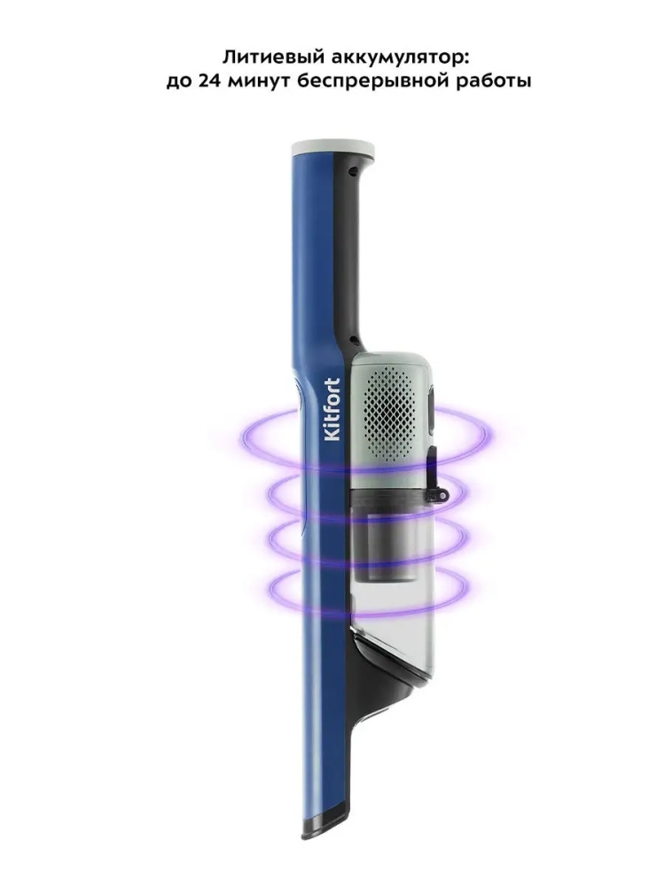 Пылесос имеет две скорости работы. Длинная узкая насадка со складной ворсовой щеткой поможет вам вычистить самые труднодоступные места. Литий-ионный аккумулятор обеспечивает высокую мощность и длительное время работы до 24 минут. КТ-578 станет вашим главным помощником в уборке.