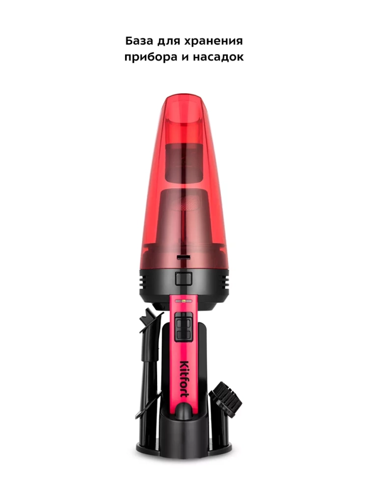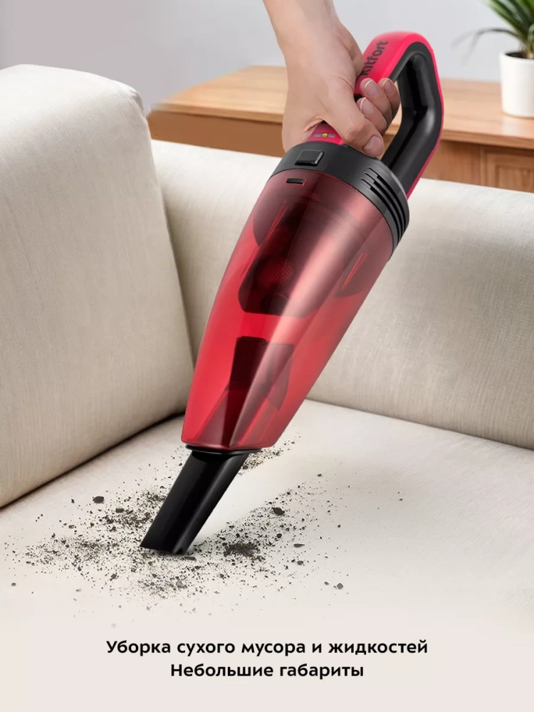 Ручной беспроводной пылесос Kitfort КТ-5203 — это портативное и компактное устройство, которое легко справится с пылью и мусором, а также с небольшим количеством жидкости. Благодаря работе от аккумулятора пылесос имеет неограниченный радиус действия: от любого уголка квартиры до машины или беседки в саду. Небольшие габариты и малый вес пылесоса делают процесс уборки простым и удобным. Пылесос может засасывать жидкости, поэтому случайно пролитый напиток перестанет быть проблемой.