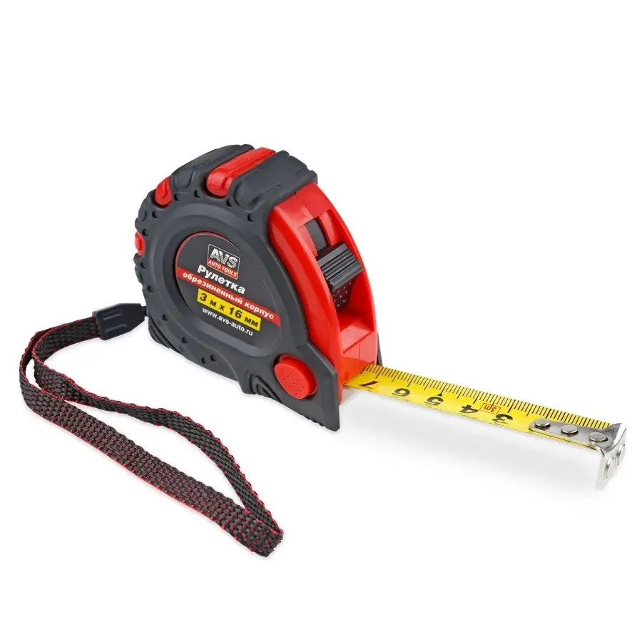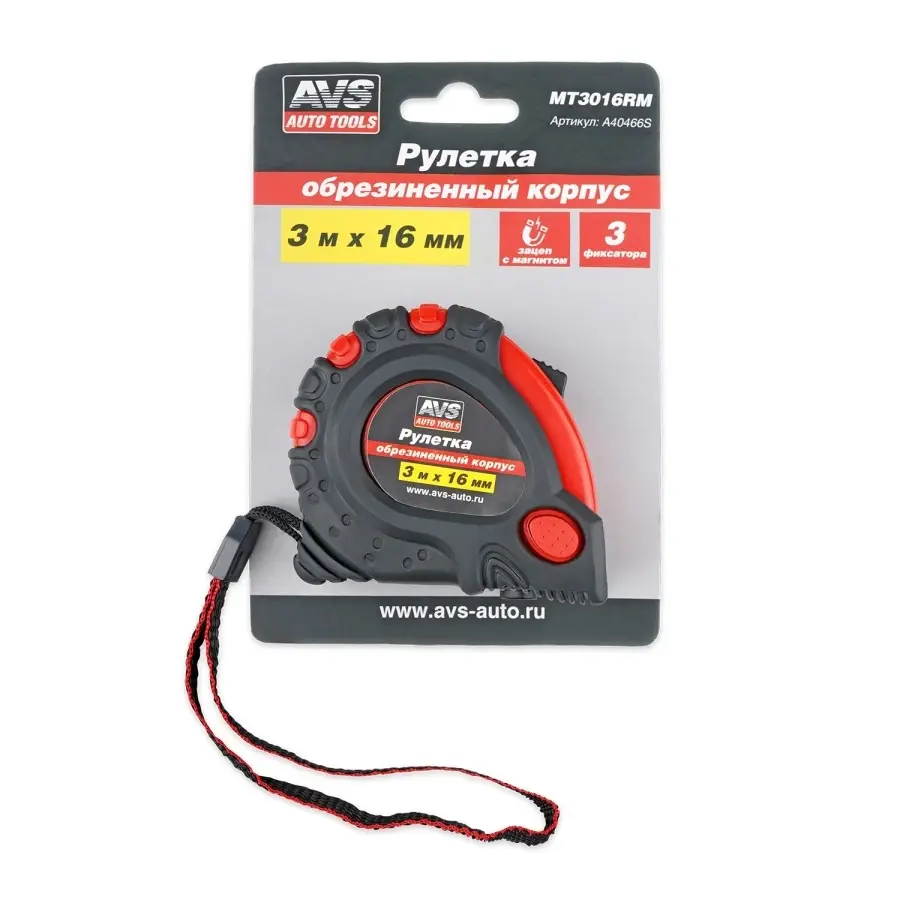 Рулетка 3м х 16 мм обрезиненный корпус (3 фиксатора, зацеп с магнитом) AVS MT3016RM