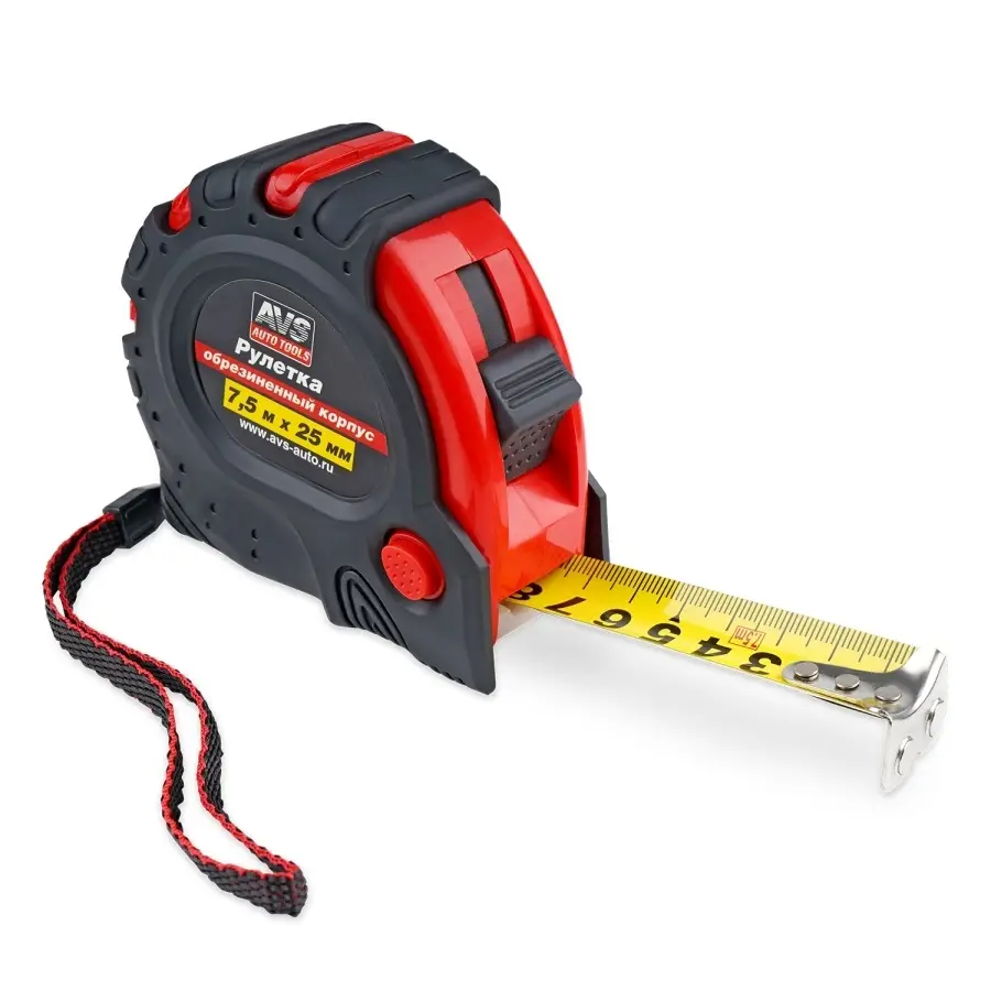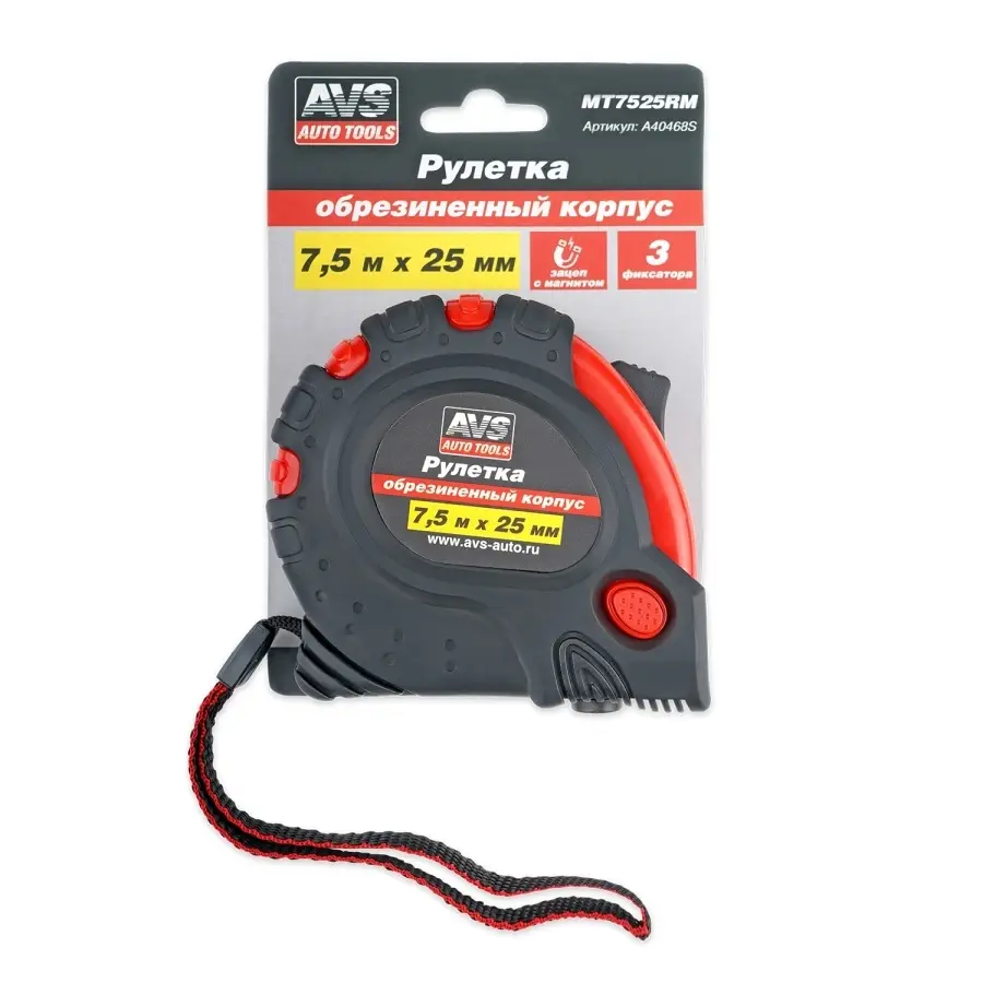 Рулетка 7,5м х 25 мм обрезиненный корпус (3 фиксатора, зацеп с магнитом) AVS MT7525RM