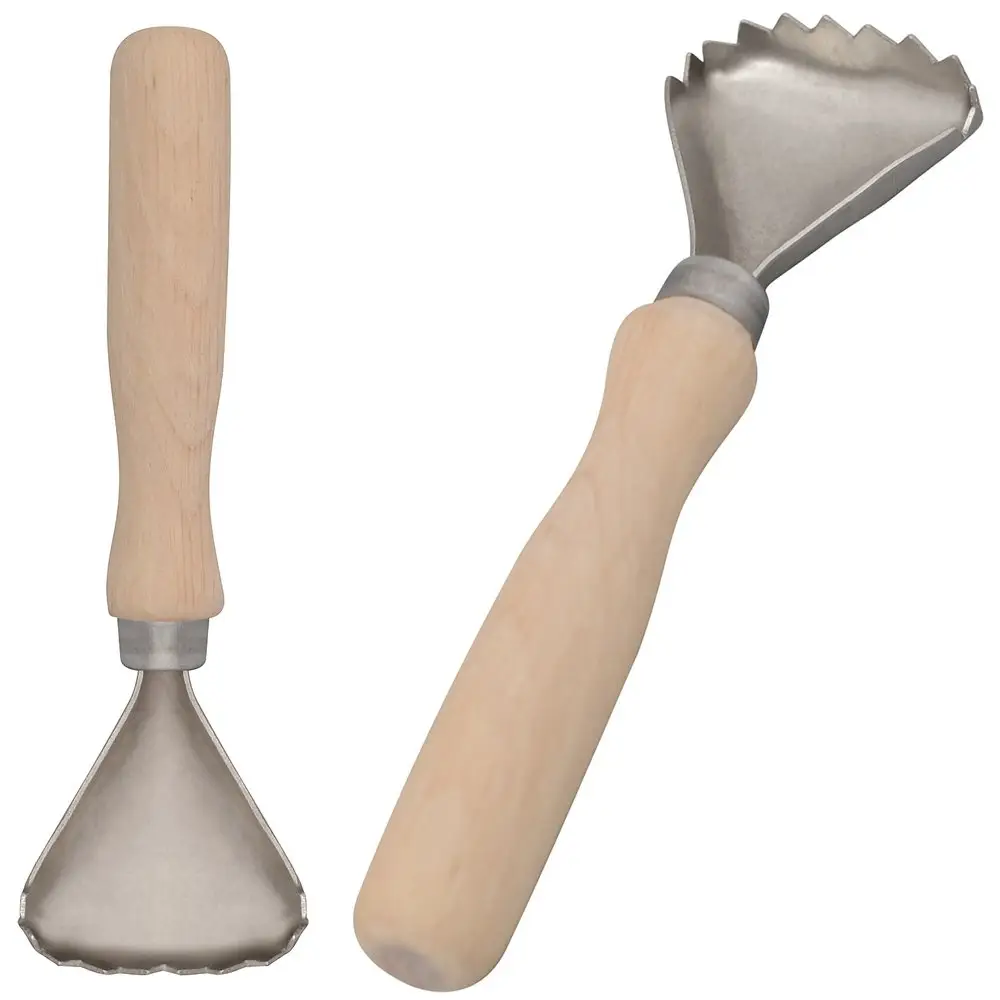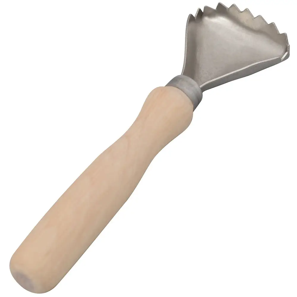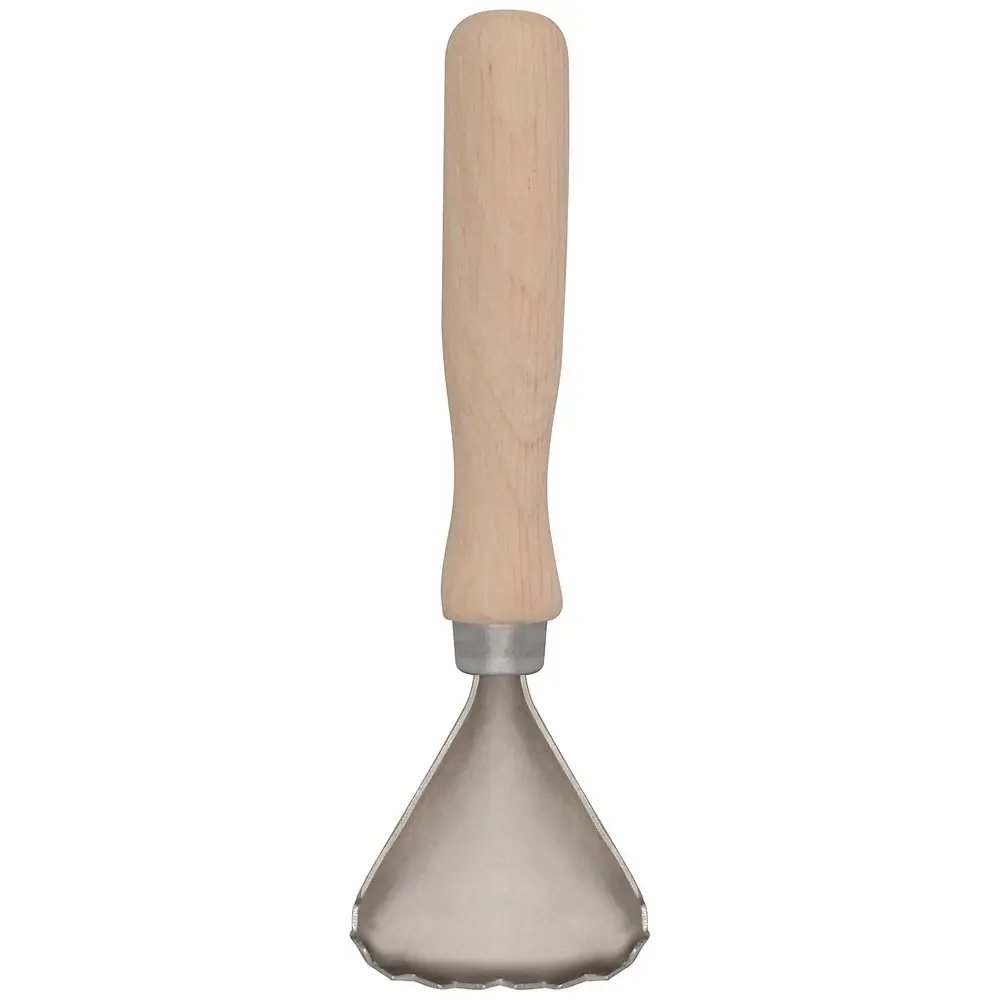 Изготовлено: рабочая часть из металла (оцинкованная сталь), ручка из лакированного дерева (бук). Размер 15,5х4,5 см.