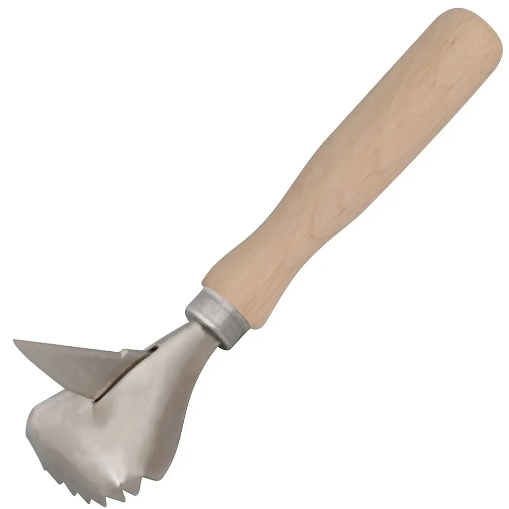 Рыбочистка предназначена для быстрого и качественного удаления рыбной чешуи. Особенность прибора заключается в специальном устройстве компактного скребка, оснащённого короткими острыми зубчиками. Такая конструкция предотвращает разбрасывание чешуи и даёт возможность очищать рыбу по всей поверхности. При помощи ножа, можно разрезать брюхо рыбы и очистить его от внутренностей. .