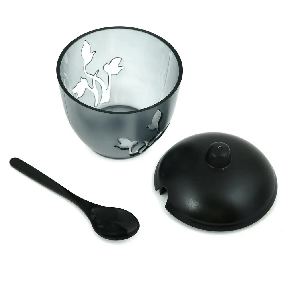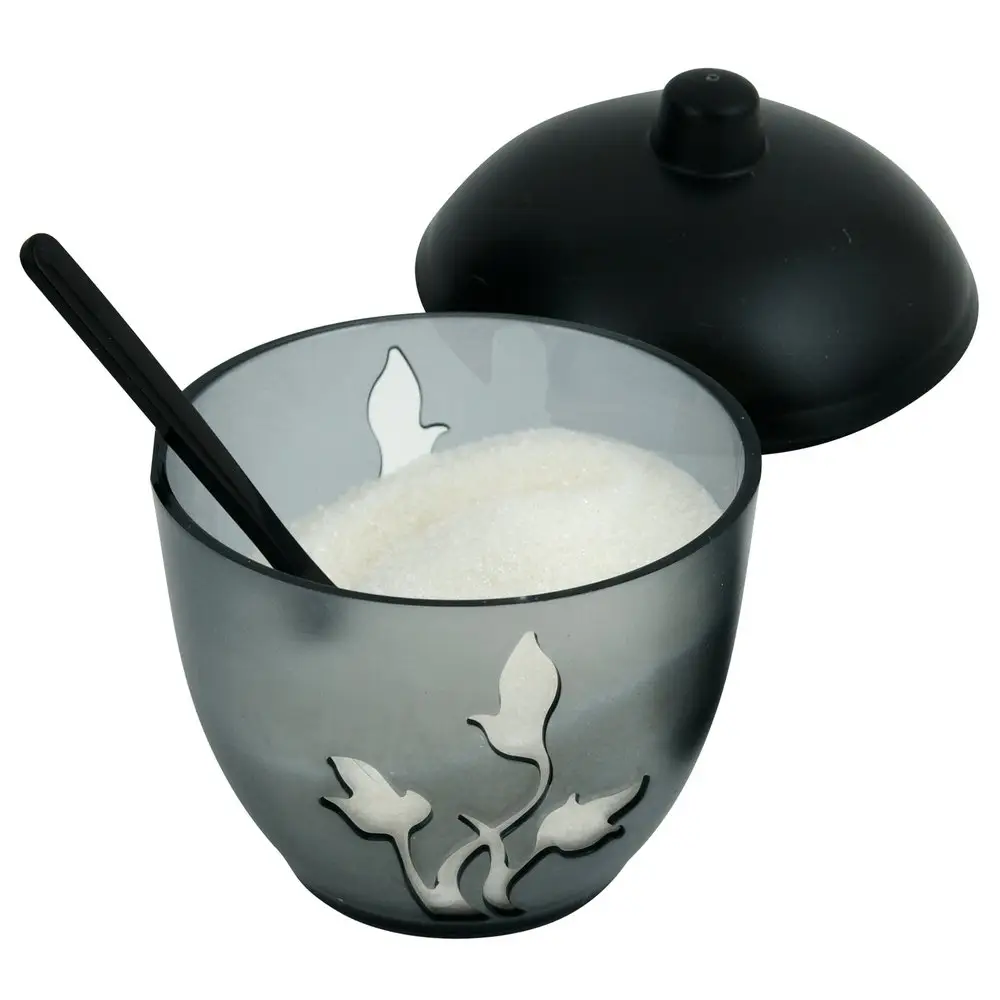 Сахарница в комплекте с ложечкой – это незаменимая кухонная принадлежность которая всегда будет у вас под рукой во время приготовления и приема пищи или чаепития. Перед первым применением и по мере необходимости рекомендуется вымыть губкой или мягкой щеткой, можно с жидким моющим средством, сполоснуть проточной водой и просушить. Изготовлено из пластмассы (полистирол). Размер 11х9х11 см.