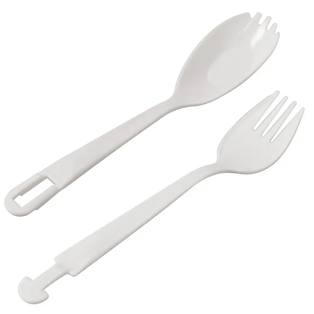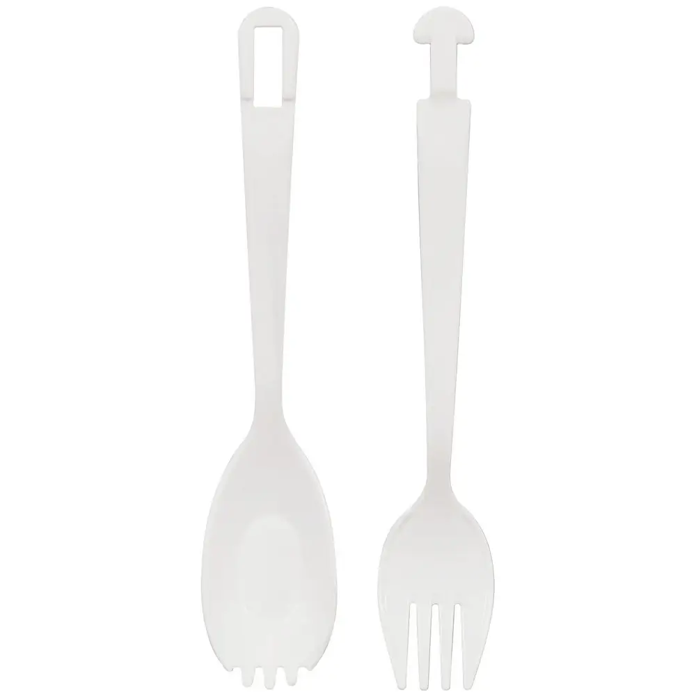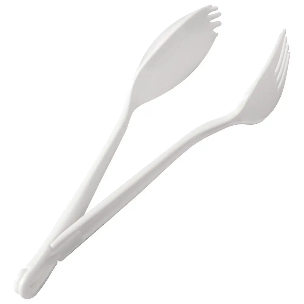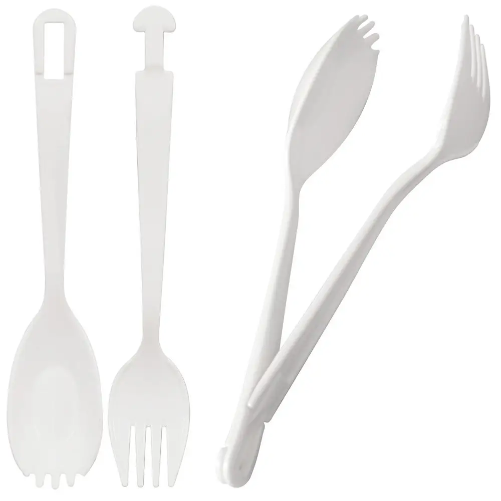 Салатную пару можно использовать в сборе - как щипцы, и по отдельности - как ложку и вилку. Щипцами удобно накладывать салат по тарелкам, доставать из банки соленые овощи, консервированные фрукты, а также вытаскивать из кипятка вареные яйца, снимать с пароварки манты. Благодаря складной конструкции, составные части пары не потеряются и ее удобно хранить.