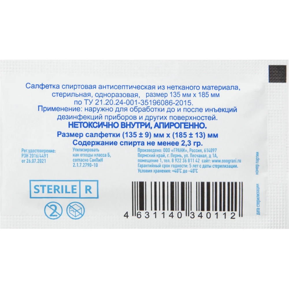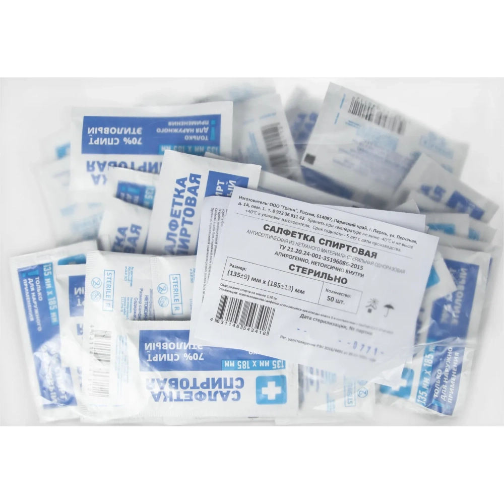 Салфетка для инъекций этил. cпирт 135х185мм Грани 50 шт/уп