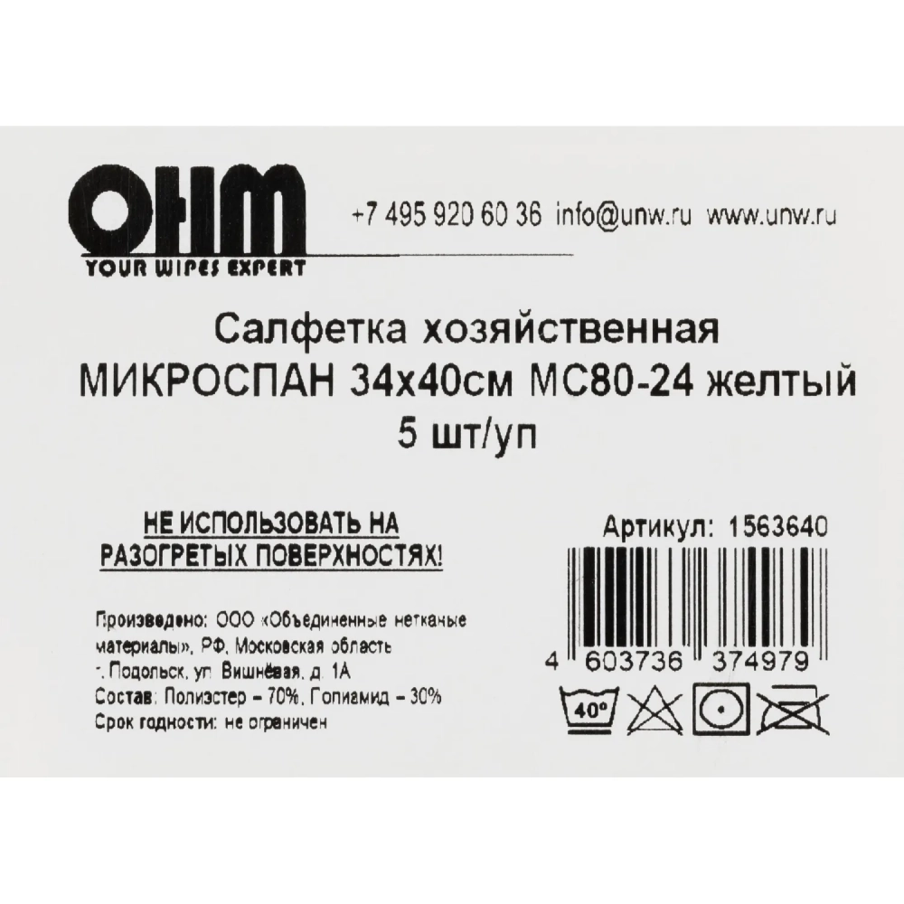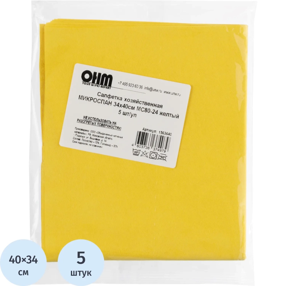 Салфетка хозяйственная микроспан 34х40см МС80-24 желтый 5шт/уп