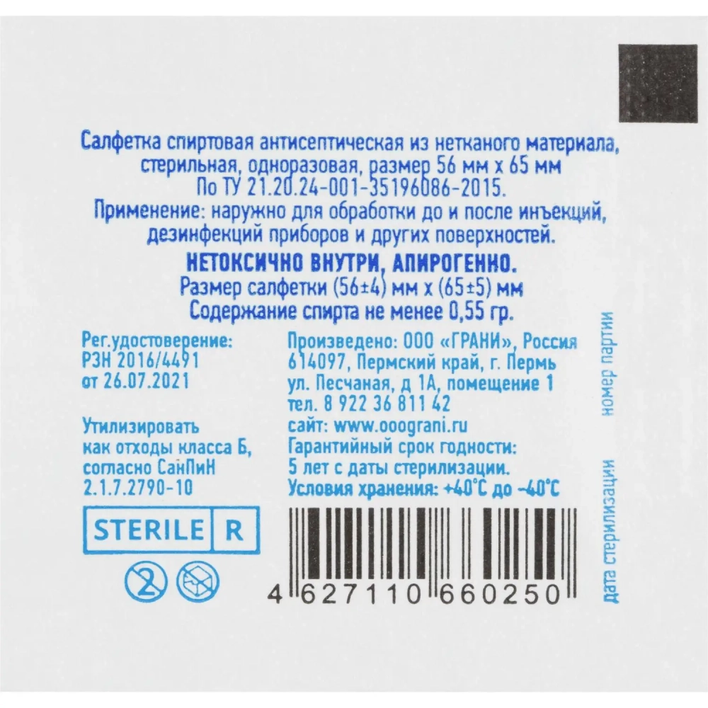 Салфетка спиртовая, антисептическая, этил. сп. 56х65мм Грани 800 шт/уп