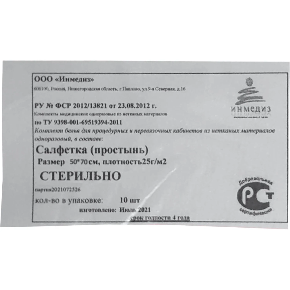 Салфетка стер., 70х50, пл. 25 1шт./уп Инмедиз