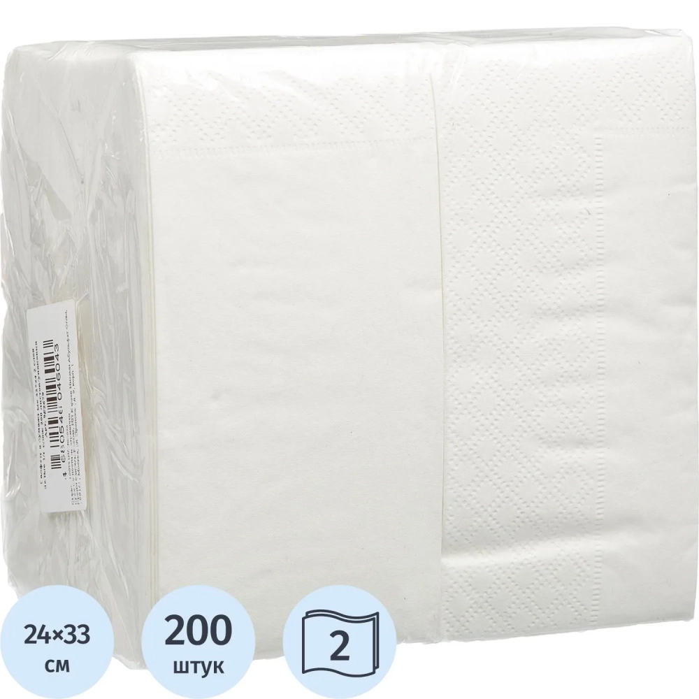 Салфетки бумажные 2 сл. 33х24 белые 1/6 слож 200 шт./уп. С33-86