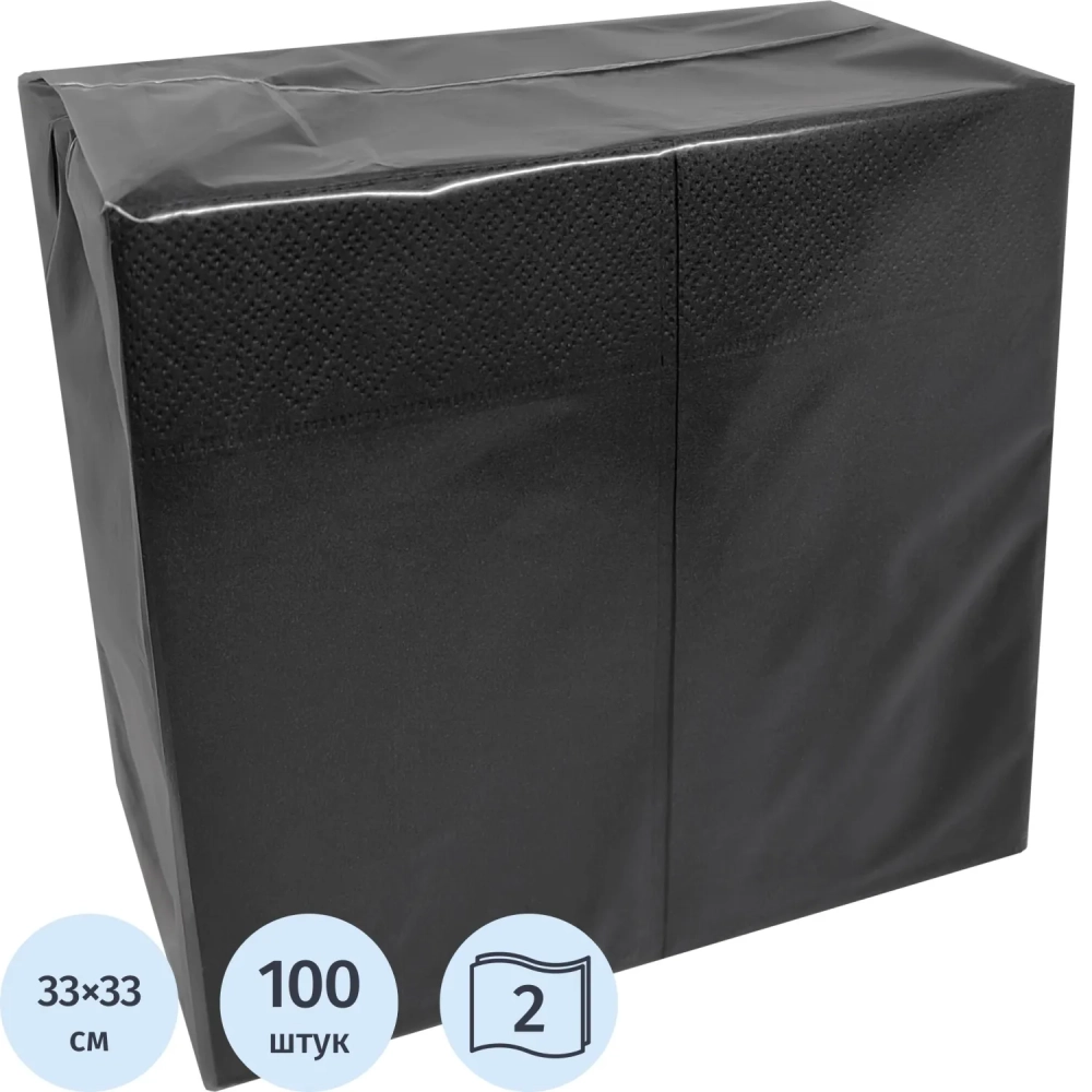 Салфетки бумажные 2сл 33х33см 1/8 слож черные 100шт/уп